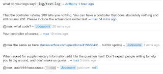 Stackoverflow and some participants in particular are being unreasonable: they like to lecture those who ask questions, especially if you're a newbie. How come they don't realize that it takes me -- the ones who asks questions -- nothing but less a minute to register a new account on a new, temporary email, ask a question, throw it away and register a new account, if needed? "You come here, thus, you're to obey the rules. The rules of Stackoverlow state: 1. First you do a google search. 2. Then you show us what you've tried. 4. Finally, exhausted and desperate, you're permitted to come to Stackoverlow and ask a question....".